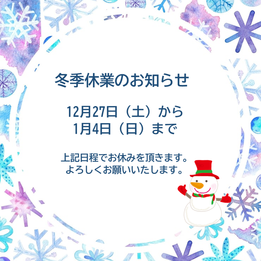 誠に勝手ながら、下記期間を冬季休業とさせていただきます。