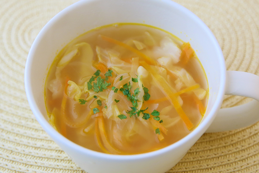 - キャベツ、玉ねぎ、にんじんはひと口大にそろえて切る。パセリはみじん切りにする。